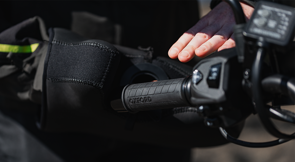 The stand-out feature is that they are 'CLIC GRIP ready'. 'CLIC GRIP' is Oxford's unique (patent-pending) mechanism by which Oxford Courier Muffs can be attached to Oxford Courier HotGrips®.